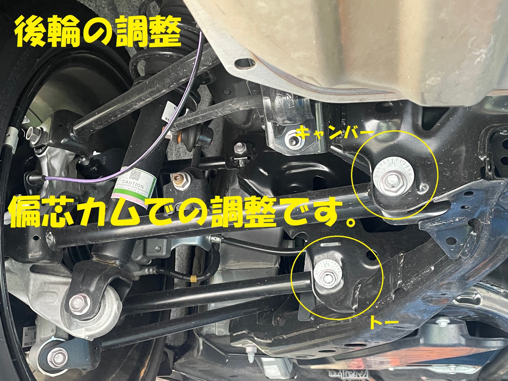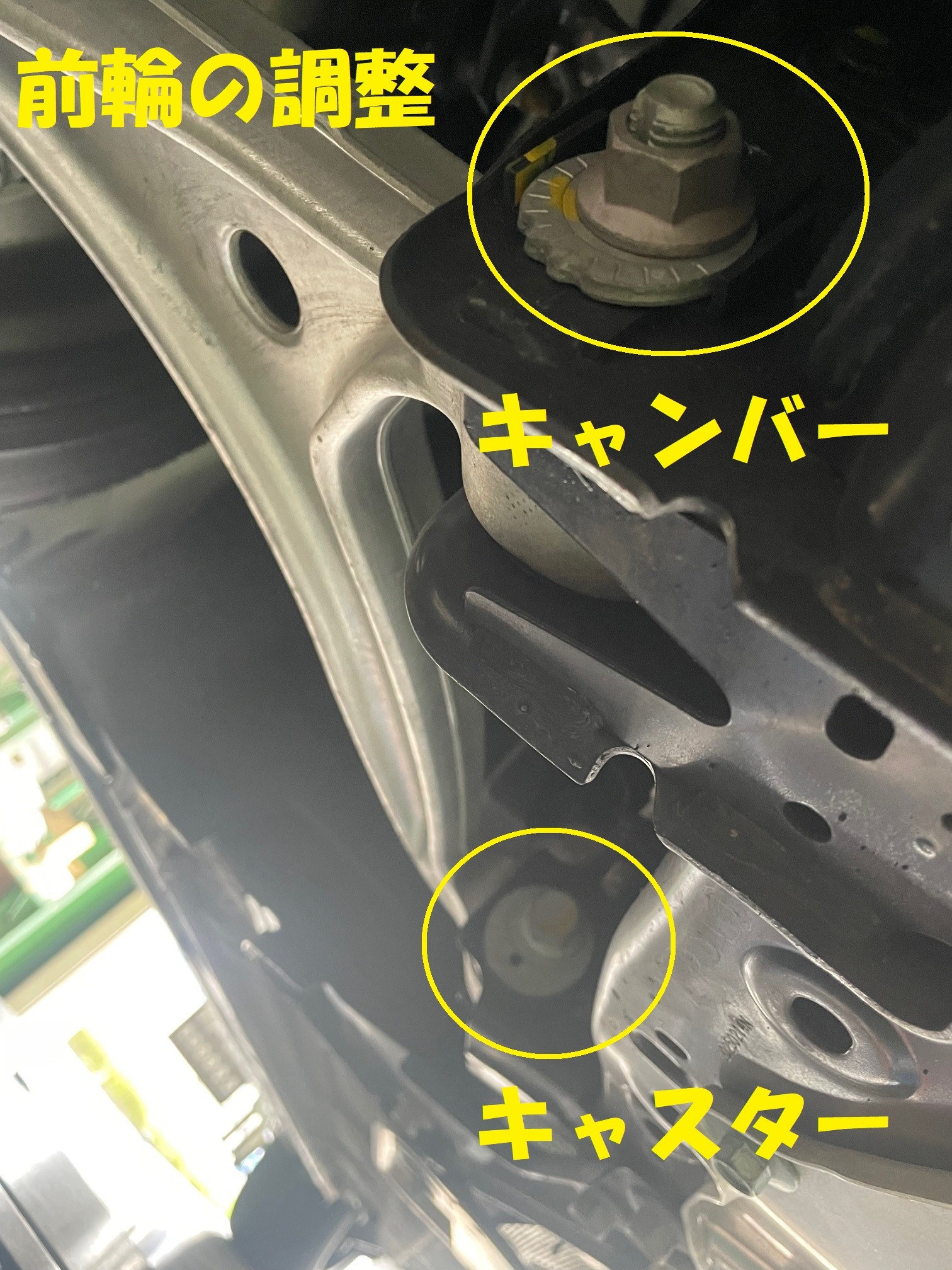 トーのみ、キャンバーのみといった個別で調整ではなく、同時に調整して適正数値に合わせていきます。