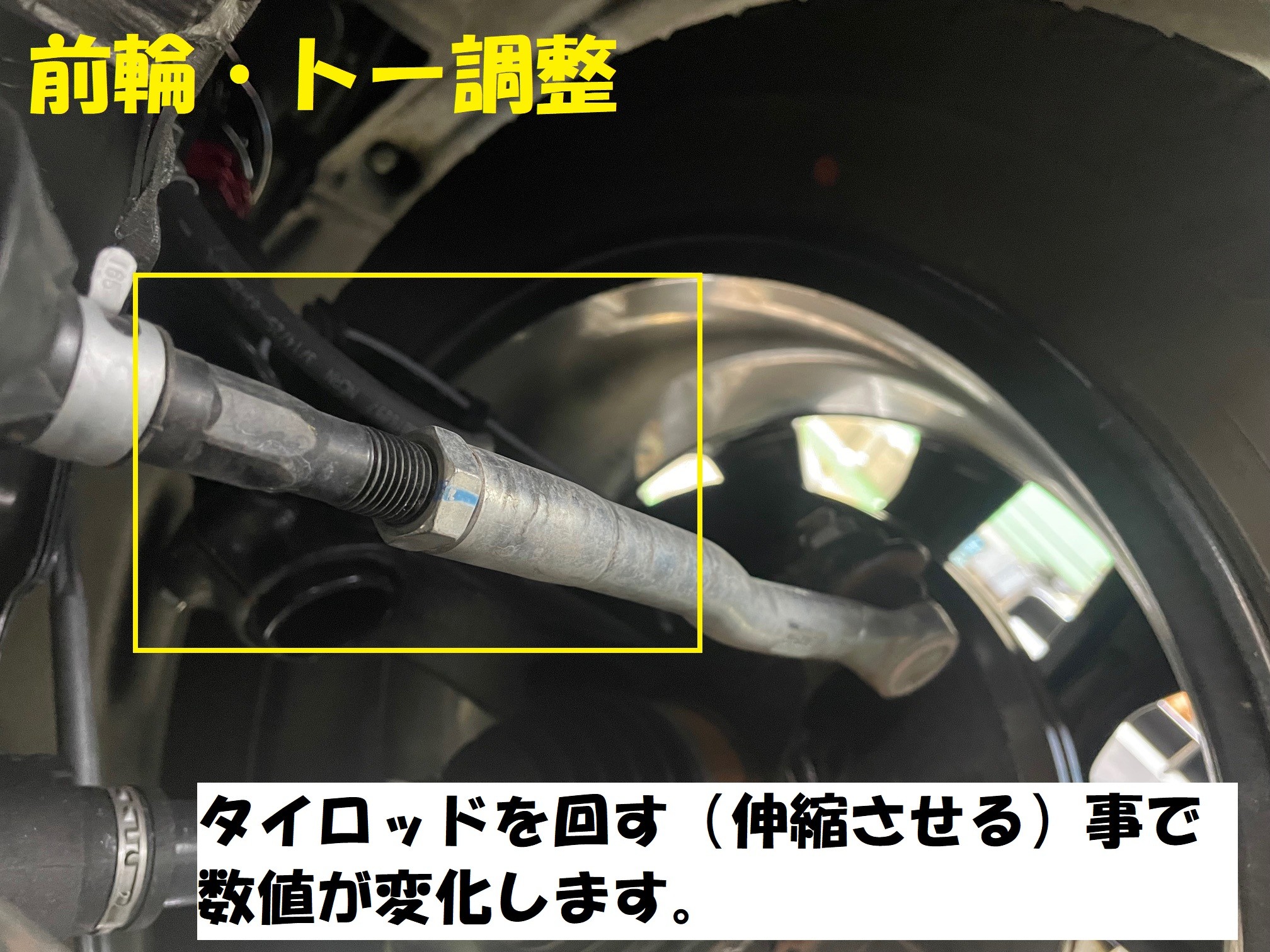 前輪トー角は、接地面の改善はモチロン、ハンドル中心のズレにも関わります。