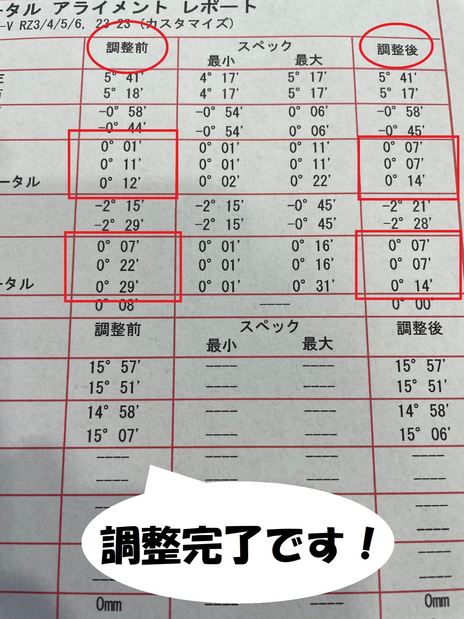 アライメント調整は、少しお時間がかかる作業となります(約60~120分)