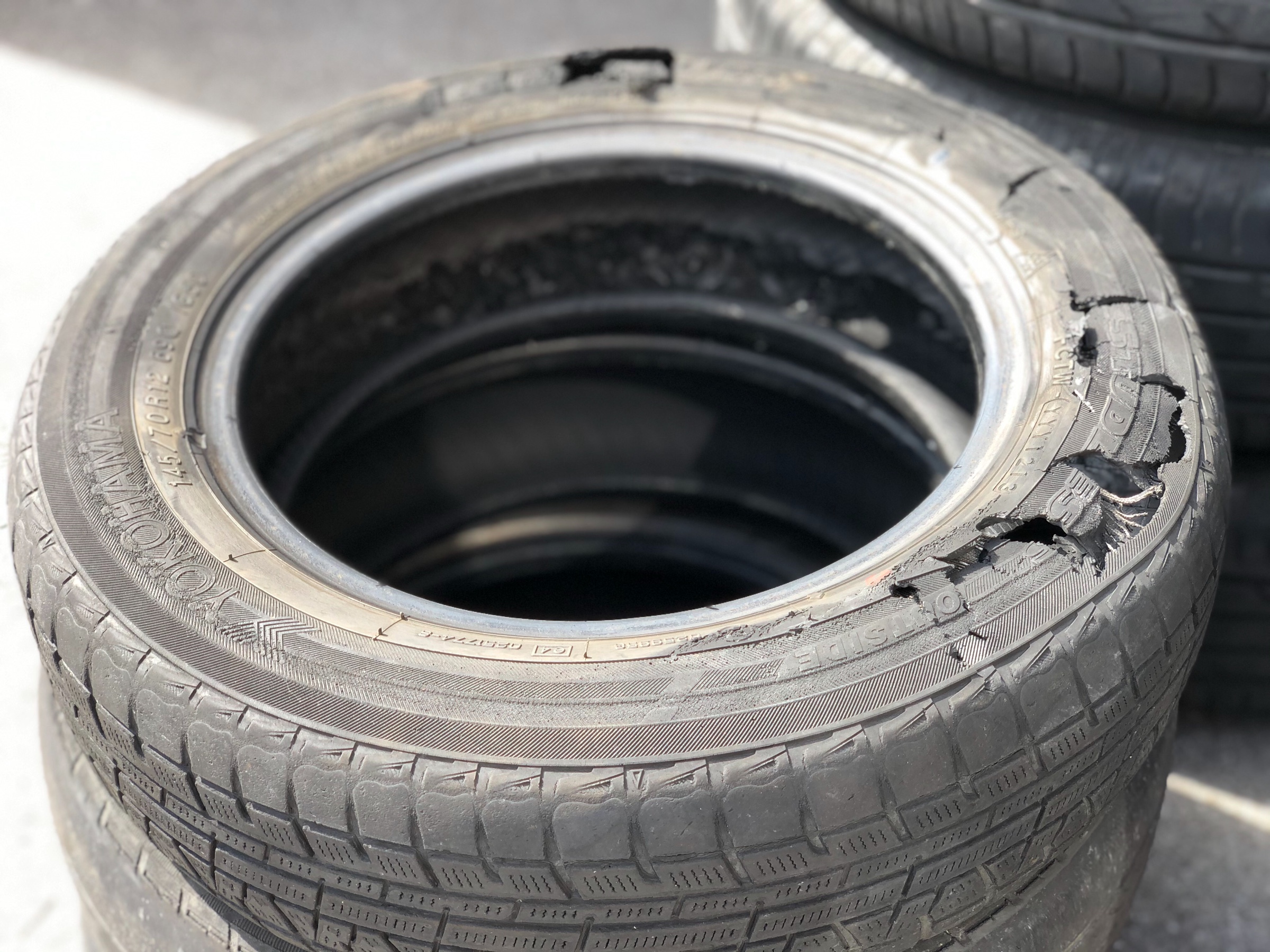 沖縄の夏の道路では熱を持ちやすくなるため、ノーマルタイヤよりも柔らかい素材でできているスタッドレスタイヤはバーストする可能性が高くなります。 特にタイヤの空気圧が低い状態で走行するのも大変危険です。また急ブレーキや急ハンドルによって、タイヤの溝部分が変形することもあり、 そこから亀裂が入ってバーストすることも考えられます。