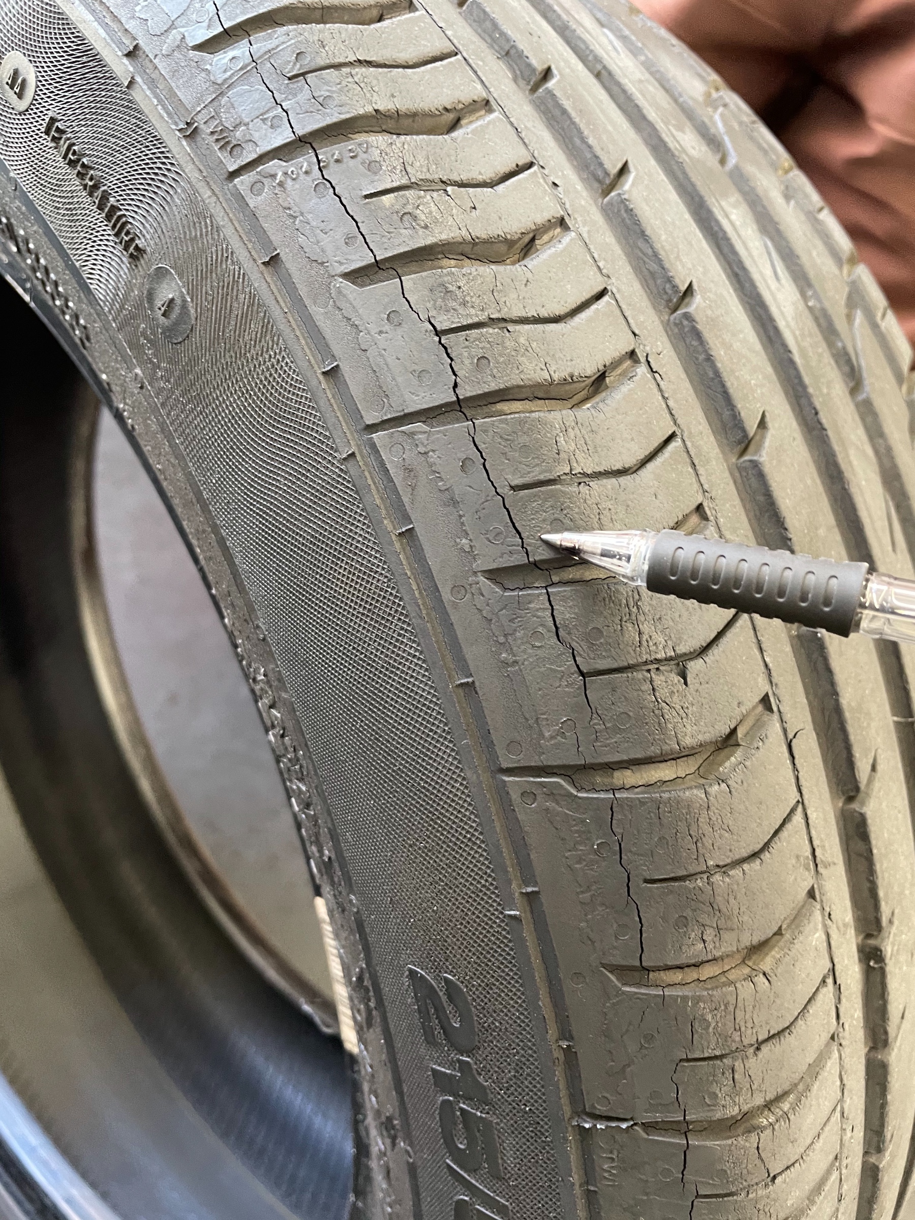 タイヤに亀裂があります。
