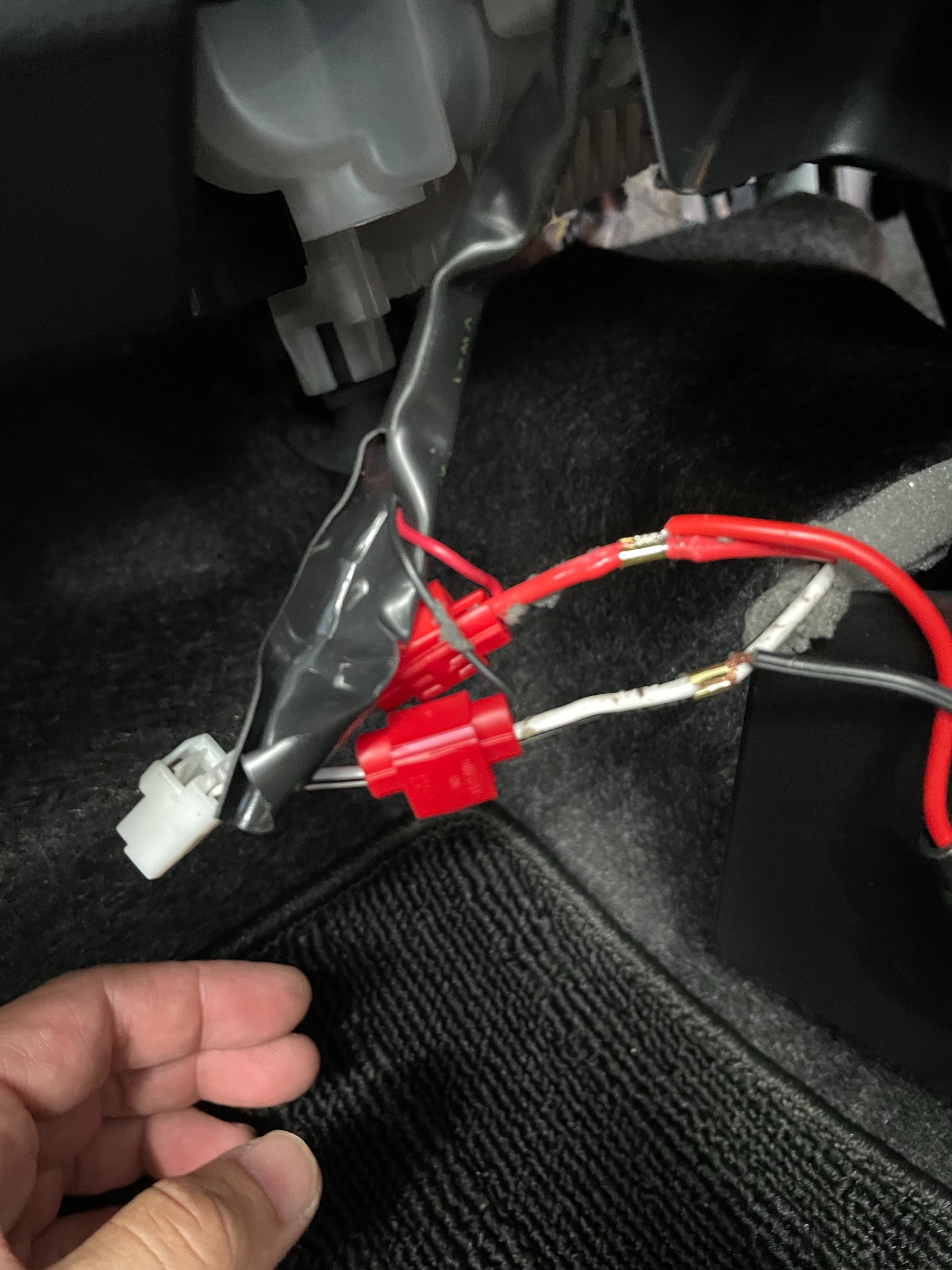 赤いエレクトロタップが使われていますが、タイヤ館牧港ではできる限りスプライス接続をします。