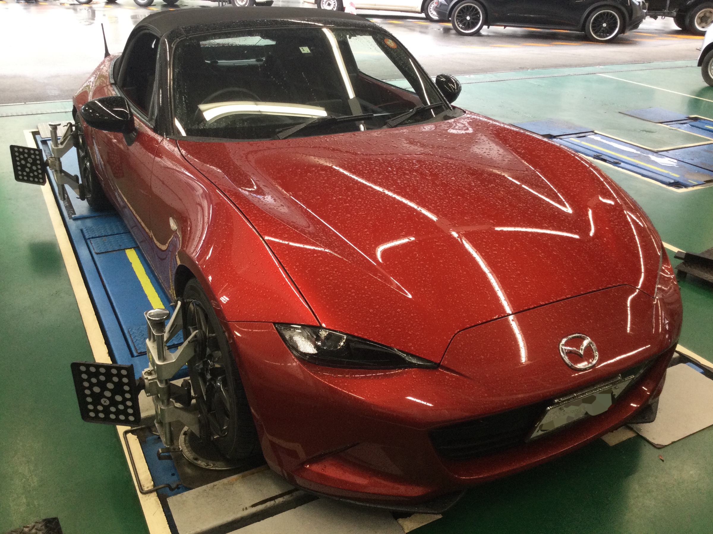 昨日は、ロードスターのアライメント測定、調整を行いました。