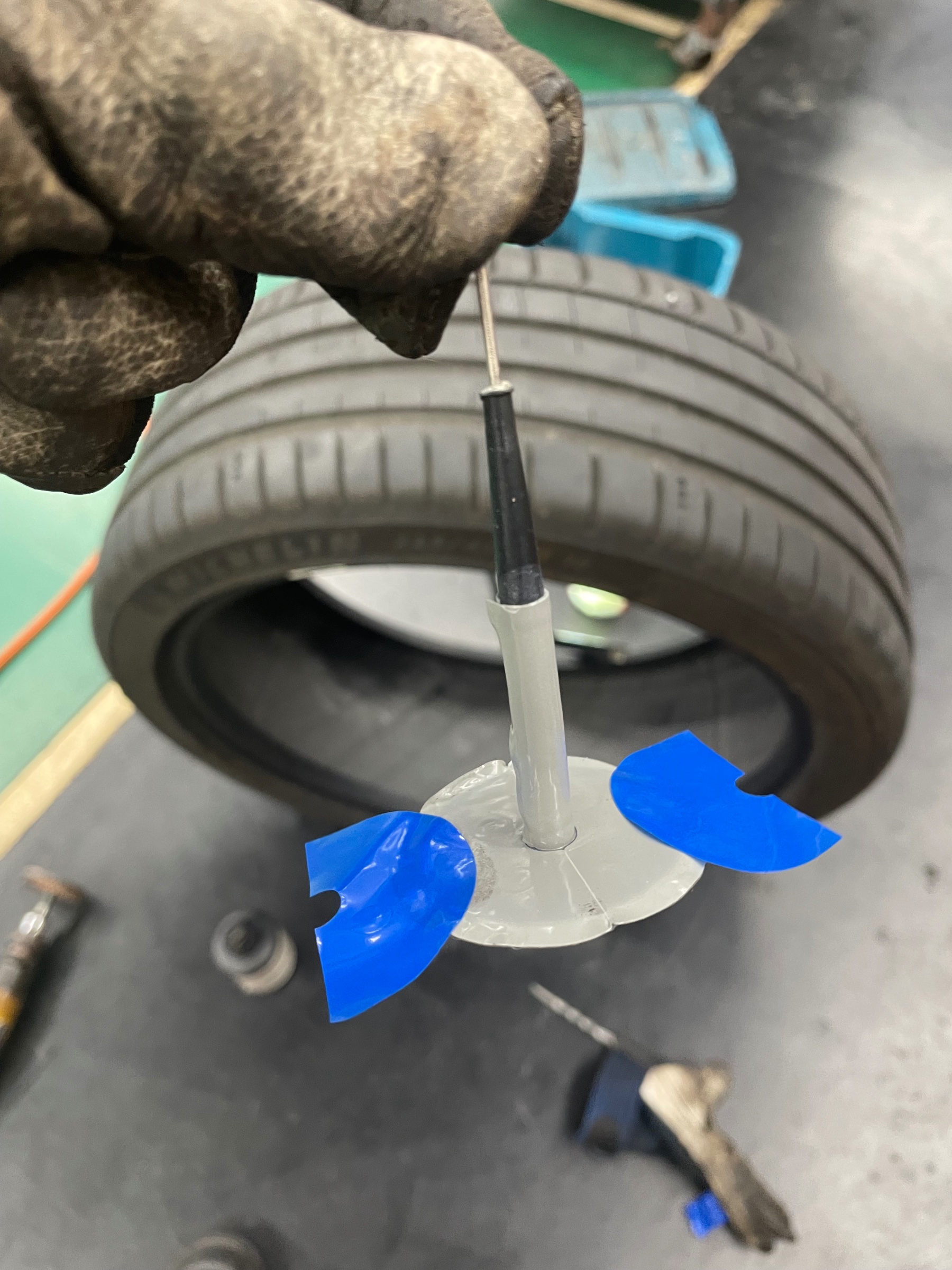 穴の大きさや、刺さっている角度などを考慮して、修理材を変えます。
