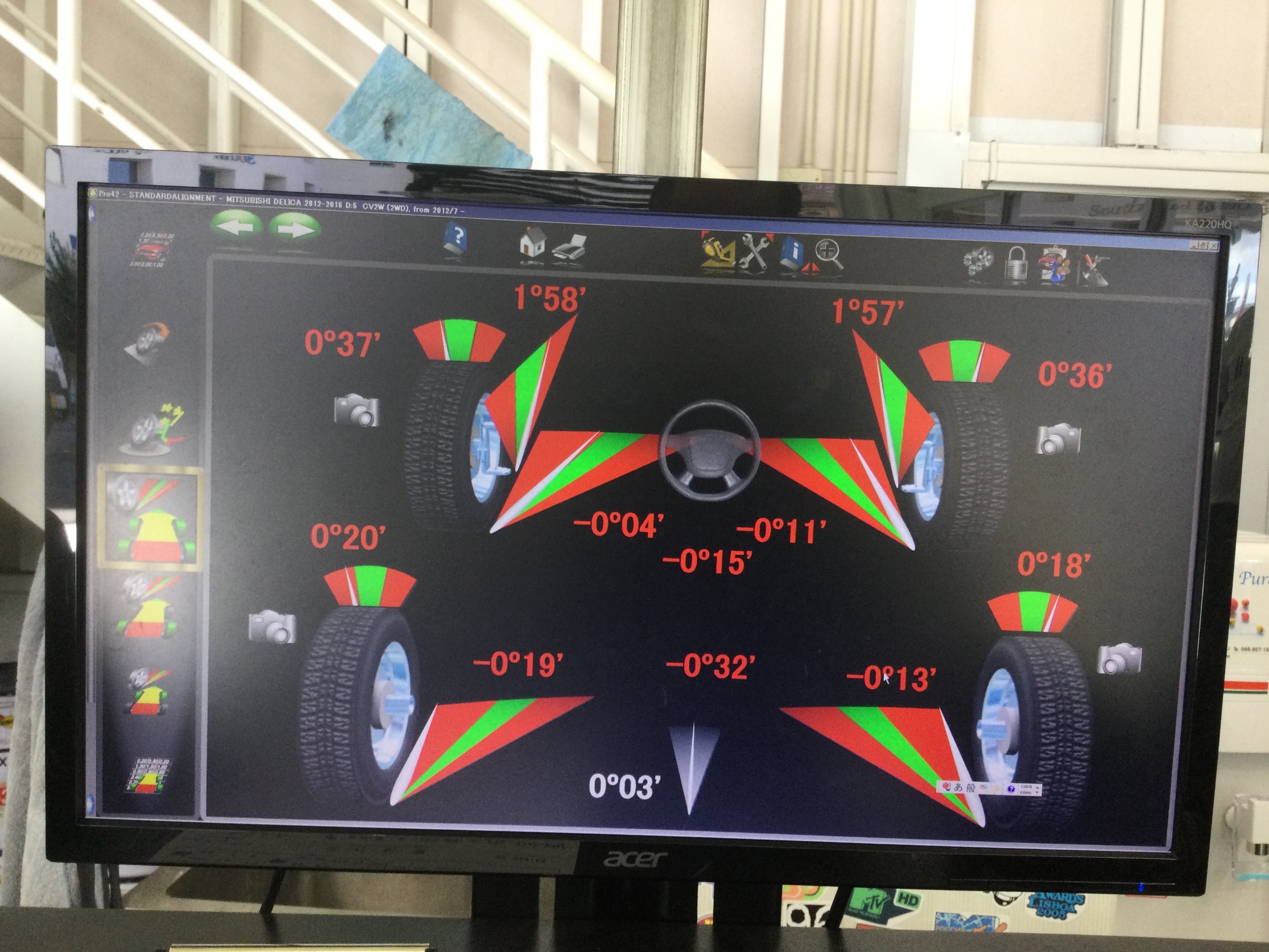 タイヤ館牧港では、ほぼ毎日アライメント調整させて頂いております。