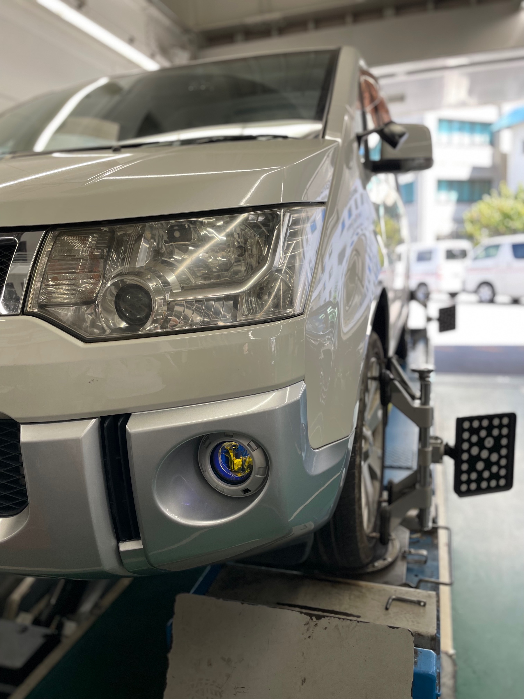 さて今回はデリカのアライメントですが、先日タイヤをブロックにぶつけてしまいハンドルセンターがズレたとの事で入庫頂きました。