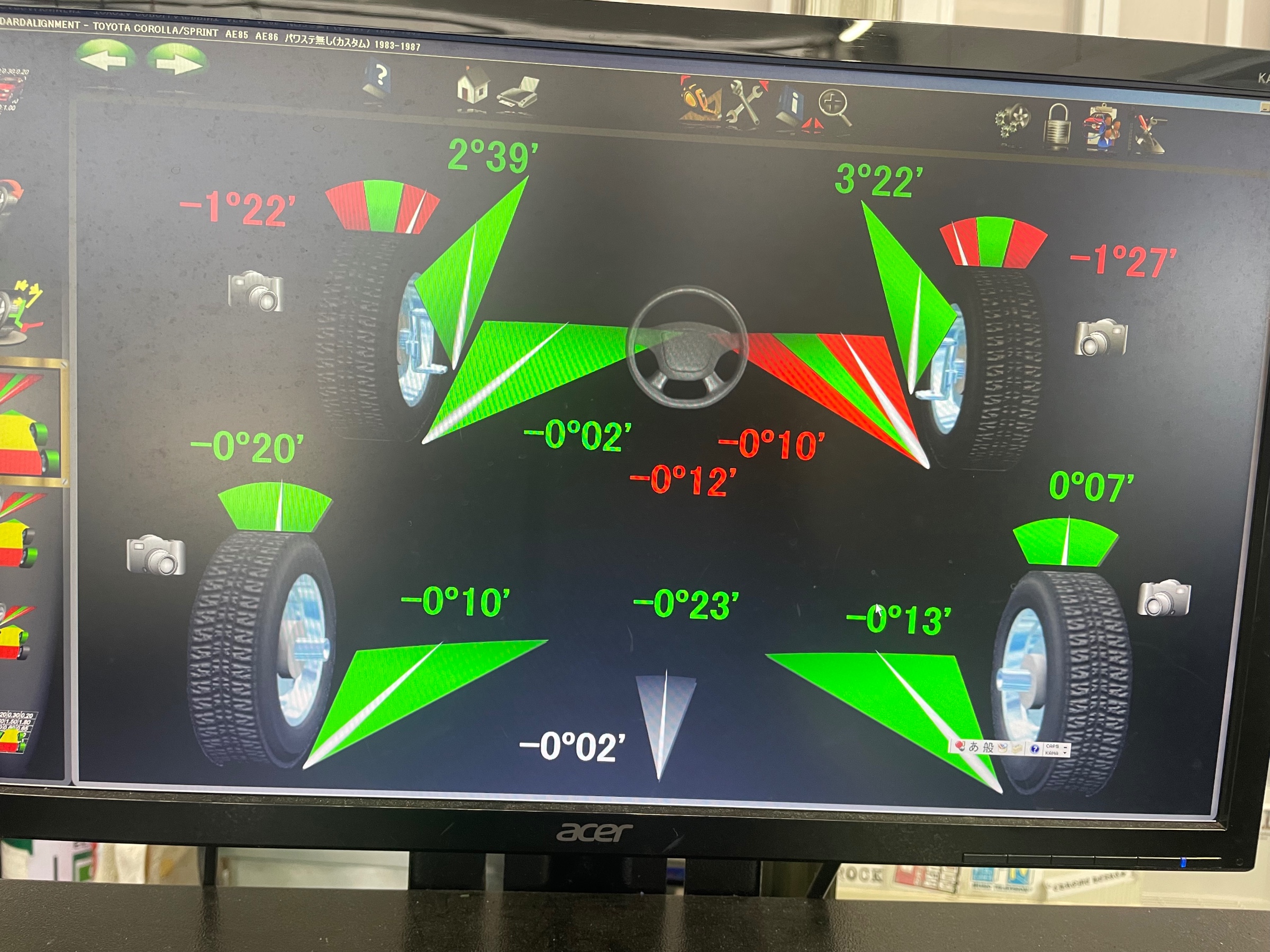 AE86 アライメント調整 ポスト 2025年11月30日 本日は、AE86のアライメント調整を行いました。 右前のタイヤが若干外に向いています。 バッチリ調整させて頂きました。 沖縄でアライメント調整の事ならタイヤ館牧港にお任せ下さい。 タイヤ館 牧港 住所:901-2131沖縄県浦添市牧港1-60-9 電話番号: 098-943-5611