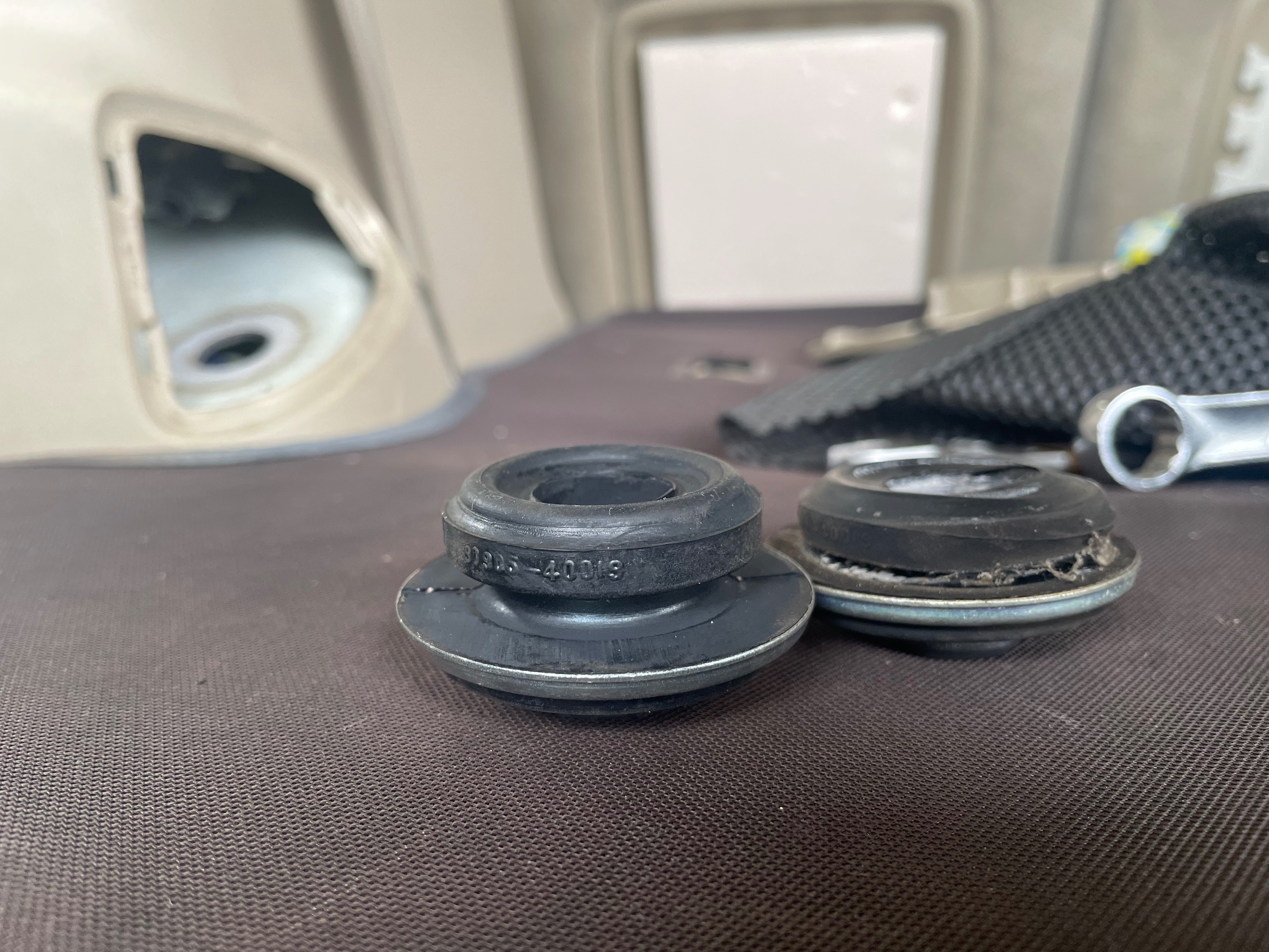 イプサム 足回りリフレッシュ ポスト 2026年4月5日 今回は、10万キロ突破したイプサムの足回りをリフレッシュしました。 足回りにはゴム、樹脂、ベアリングなど消耗品の為、交換する事で、乗り心地が新車の時のように、戻っていきます。 交換前と新品比較 交換後は当店得意のアライメント調整行いました。 お客様からお電話頂き、新車に戻ったみたいとお声頂きました。 足回りのリフレッシュはタイヤ館牧港にご相談ください。 タイヤ館 牧港 住所:901-2131沖縄県浦添市牧港1-60-9 電話番号: 098-943-5611