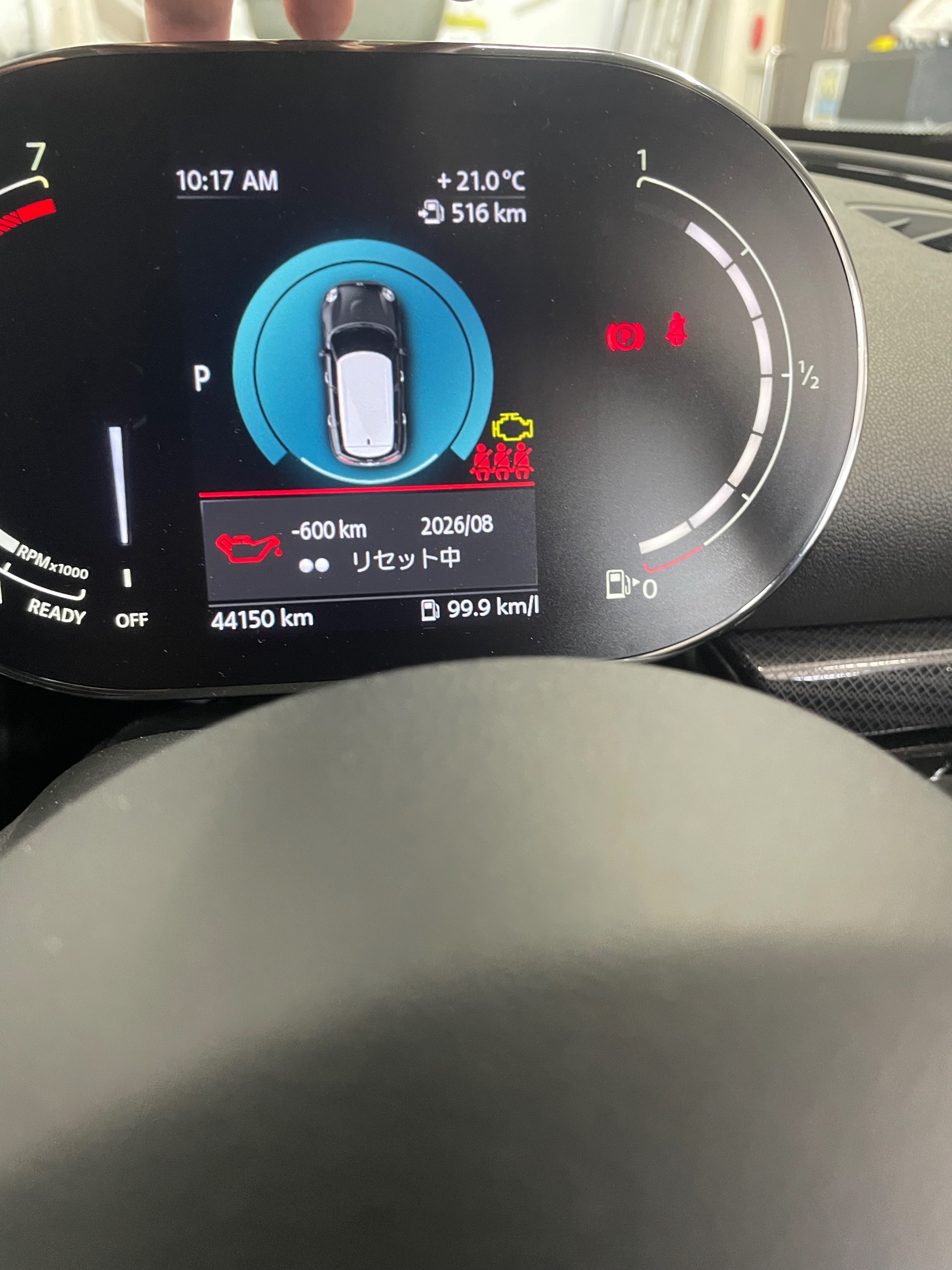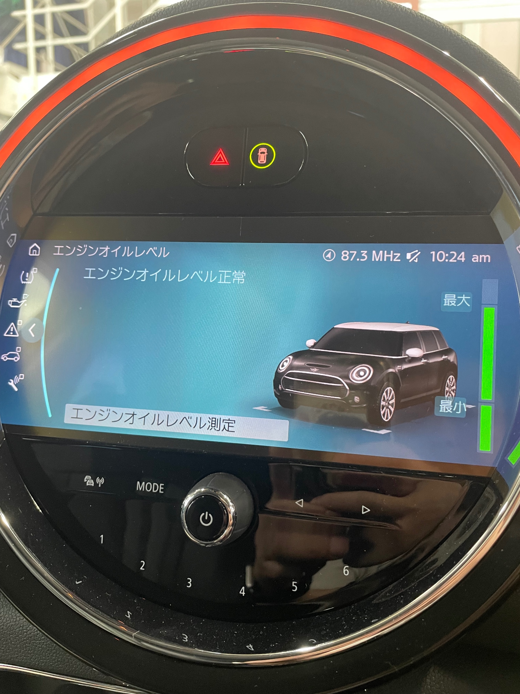 F54MINIクラブマン オイル交換 ポスト 2026年4月25日 最近、MINIのオイル交換が増えてきております。 オイル交換後はしっかりリセットします。 オイルのレベルゲージが無いので、コンピュータでオイル量を測定します。 最後にオイル漏れが無いかチェックして完了。 タイヤの空気圧も少なかったので、補充してリセットしました。 タイヤ館 牧港 住所:901-2131沖縄県浦添市牧港1-60-9 電話番号: 098-943-5611