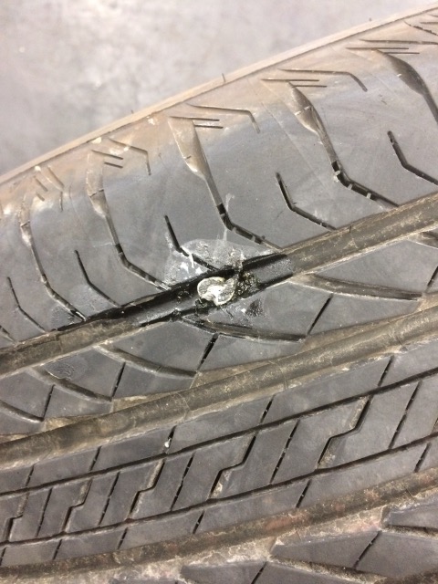ネジが刺さっている修理です。 しっかり中まで確認し、修理可能か見極めます。