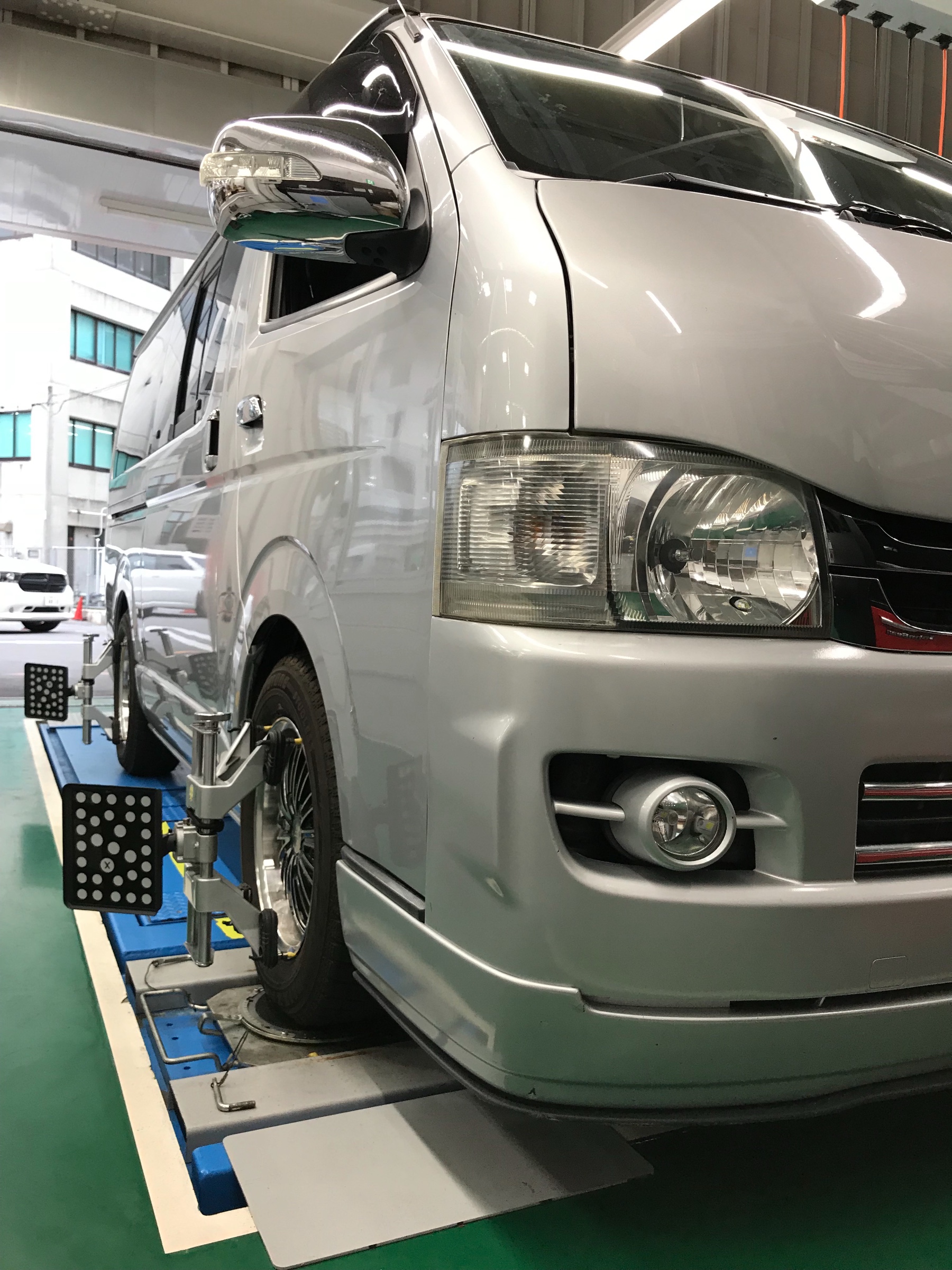 ハイエースアライメント( ͡° ͜ʖ ͡°) ポスト 2018年3月9日 200系のハイエースのアライメントを行いました。 車高を下げましたので、当店得意の3Dアライメント調整です。 ハイエースのフロントはかなり細かく調整できます( ͡° ͜ʖ ͡°) アライメント後、バッチリです。 担当:メタル好き店長_:(´ཀ`」 ∠):