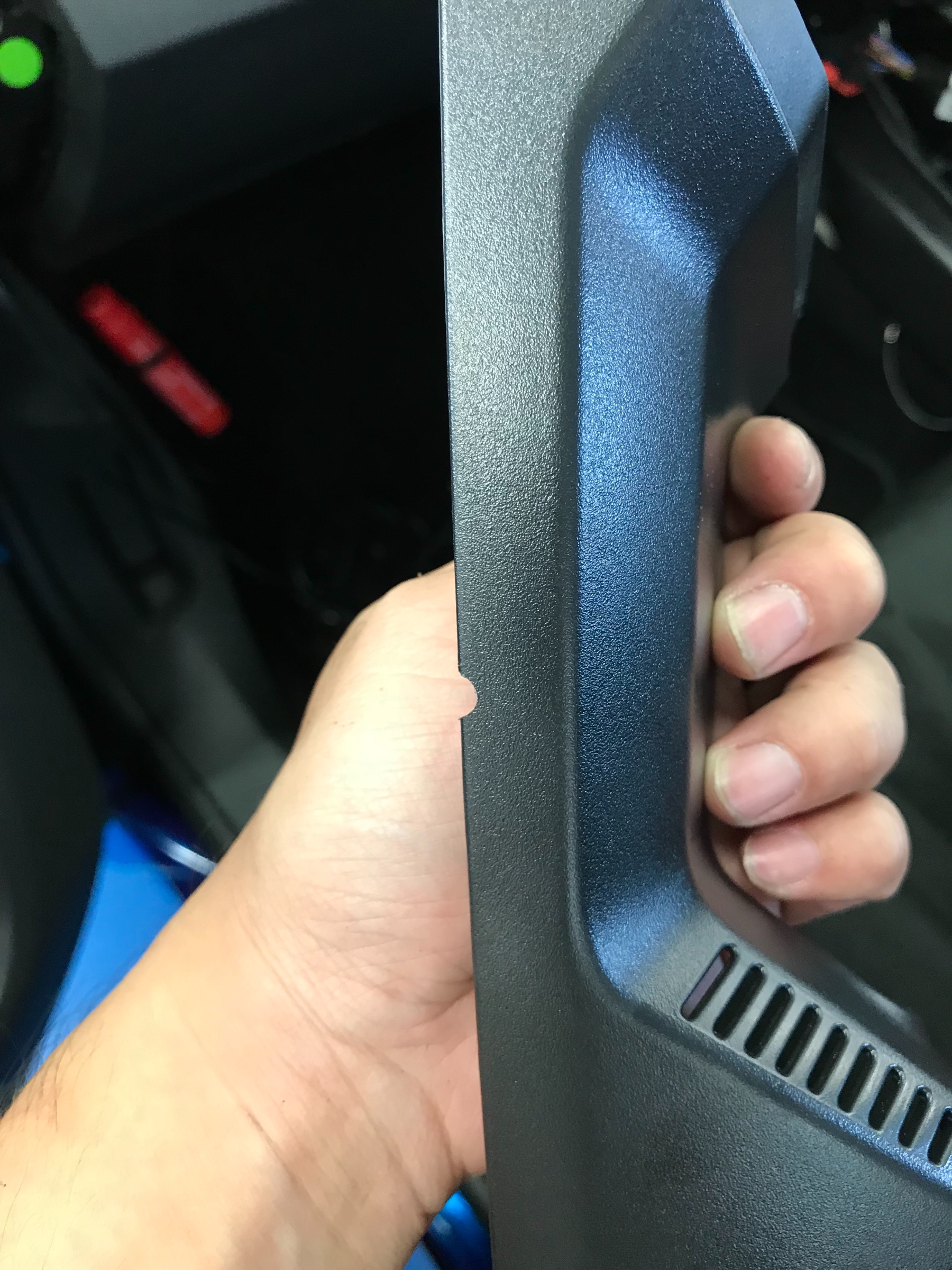 ミラーの後ろに取り付けて、配線が通るために、ヤスリで少し削りました。
