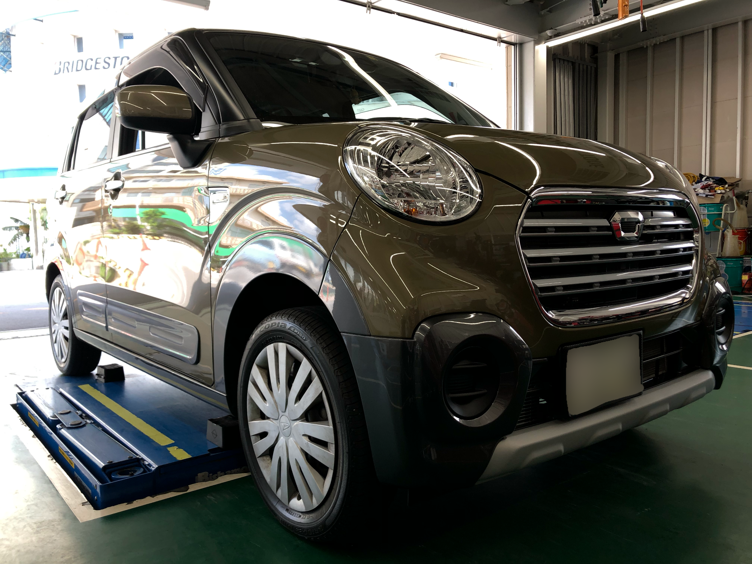 お車は最近購入され、タイヤはまだまだ使える状態ということで純正のスチールホイールからアルミホイールに交換です!