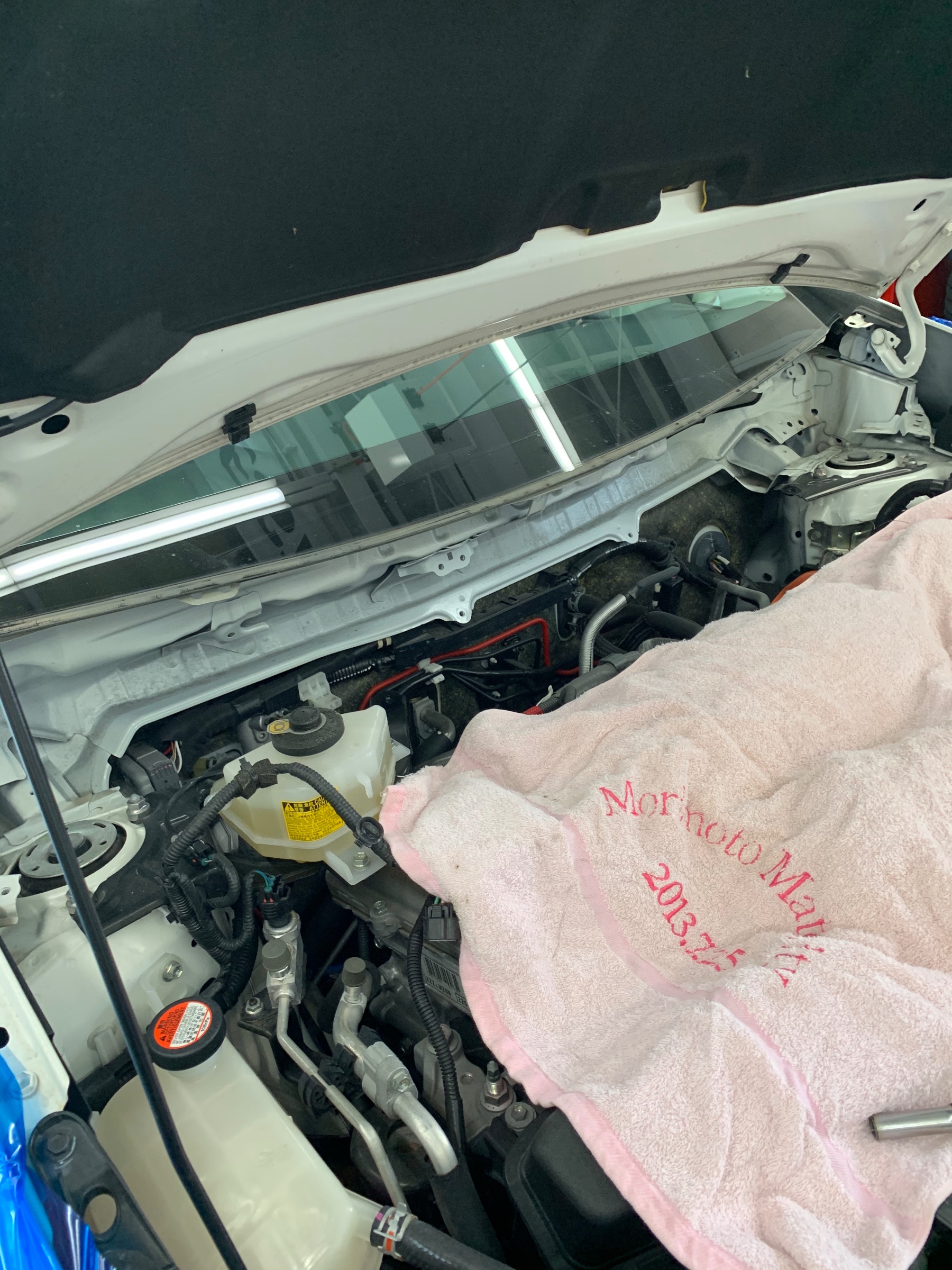 こちらのお車、足回りを交換する場合ワイパー周りをバラします。