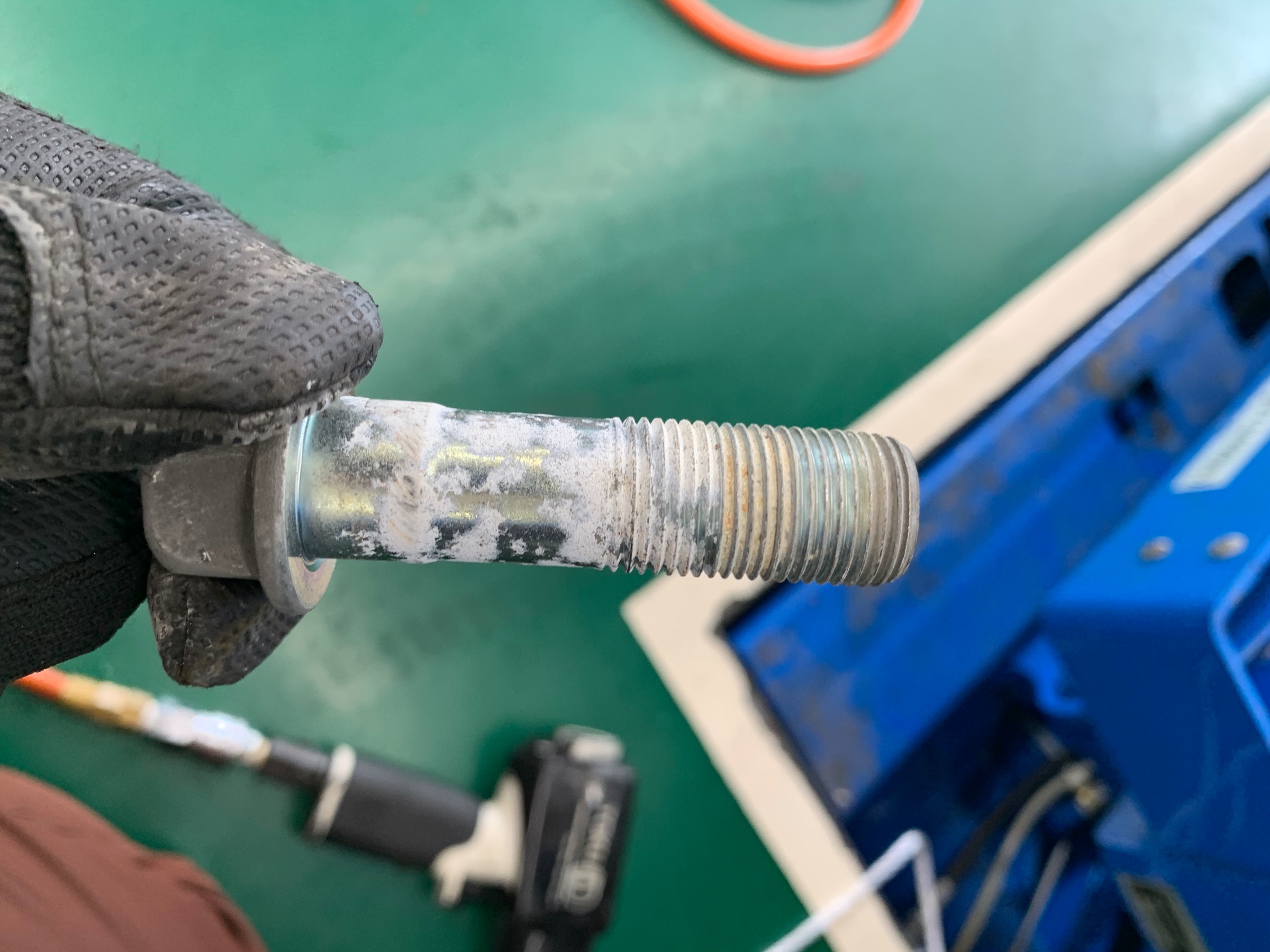 ボルトも白サビがでているので、磨きます。