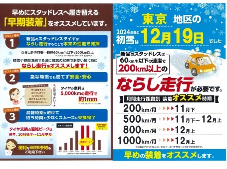 雪予報が出ています!冬用タイヤ・チェーンは準備されていますか?