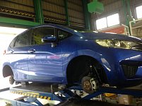 フィットのスタッドレスへの脱着・ハブ防錆作業です。 もう脱着作業始まってます。 平日はまだ予約が空いてます。 ハブの防錆作業も施しました。