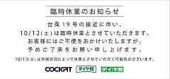 ショップからのお知らせにも掲載させて頂きましたが・・・ 明日、10月12日(土)は、台風19号の影響に伴い、臨時休業とさせて頂きます。 日頃から、タイヤ館幕張店をご利用頂いているお客様には、大変ご迷惑をお掛けしますが、 何卒、ご理解とご協力をお願い申し上げます。 また、翌10月13日(日...