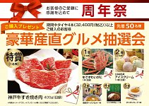いよいよ周年祭まであと8日となりました! たくさんの方に来て頂ける様に周年祭の魅力をお伝えして頂こうかと思います! まずは、期間中タイヤ4本(¥32,400以上)お買い上げのお客様! 豪華産直グルメ抽選会へご案内します! みてくださいこれ!すごくないですか? 私も参加したいです..お肉か...