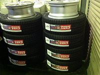 こんばんは! 本日はホイルセットですね! タイヤはICE PARTNER! 幕張の辺でしか走ってない方はおすすめタイヤですね! 寿命はVRXとVRX2より短いなんですが、値段がお得ですね! もちろん、タイヤ外した状態でハブの所ですね! 錆止めやりましょう! 6ヵ月ー1年ぐらいの錆を止められますよ