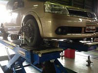 本日ご紹介するのは 日産 ラフェスタ のアライメント調整です。 ズレたタイヤの角度を真っ直ぐ整列させています タイヤを新しく交換と同時に実施するのがオススメです。