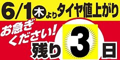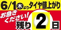 もう2日でタイヤが値上がりしてしまいます