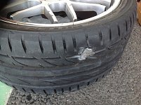 本日ご来店のお客様はスペアタイヤ装着でのご来店です。 先がとがって無くても刺さるんです! これはなんでしょう??鉄製の手のこうサイズの破片です。 角度を変えてみてもスゴイですよね? まだ刺さったままだからですが、これが走行中に抜けたり、タイヤを引き裂いたりしたら… スペアタイヤの空...