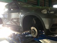 BMWのスタッドレスタイヤ交換です。 タイヤはブリヂストン DM-V2 255/55R18 です。 これで急な降雪でも安心ですね。