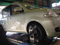 シエンタのタイヤ交換・アライメント・ATF交換作業です。 ATF(オートマチックオイル)も交換して ばっちりですね♪