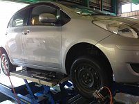 ヴィッツタイヤ交換のアライメント調整作業です。 タイヤは ブリヂストン ネクストリー タイプL です。 ロングライフのネクストリーです。 アライメント調整もしたので、更にながもちですね。