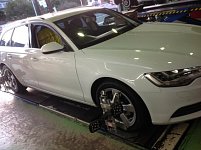 アウディのタイヤ交換・アライメント調整作業です。 タイヤは ブリヂストン ポテンザ RE003 です。 街中メインのスポーツタイヤですね。使い勝手が良いスポーツタイヤです。 ボディー剛性の高い、欧州車にもピッタリですね。