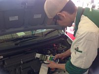 ご存知の方もいらっしゃるかと思いますが当店では、作業時に無料の安全点検を行っております。本日は、その中でもバッテリーの点検についてご紹介します。まずはじめにバッテリーテスターという機械をバッテリーにつなぎ、操作をします。そして、操作をすると 下記の様なレシートが出てきます。(...