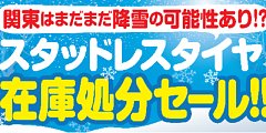 1月20日の金曜日に関東地方にも雪予報がでましたよ。21日も路面の凍結が 予想されます。スタッドレスタイヤを装着してない方は早めの購入装着を おすすめ致します。 今丁度「スタッドレスタイヤセール」開催中ですよ。