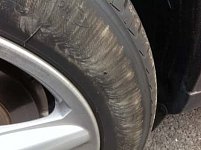 パンクというとクギやネジ刺さりを想像しがちですが、 段差やブロックなどにタイヤの側面をぶつけたり、すったりすると 側面に穴が開きパンクしてしまいます。 接地面と違い、側面は修理が効かないですし一気に空気が抜けてしまうので スペア交換などが出来る場所に車を移動するときに、ホイールな...