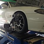日産シルビアのアライメント調整です。 スポーツカーはミニバンや軽自動車よりも調整できる箇所が多いです。 車高調整後や足廻りパーツを交換したらアライメント調整をしましょう!