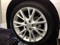 本日いらしたレクサスHSのお客様に レグノGR-XIをご購入いただきました。 パンクからの4本交換となりました。 いままで履いていたタイヤとの違いを感じていただけると うれしいです。 また、新しいタイヤの取り付けと同時に アライメント調整も実施いたしました。