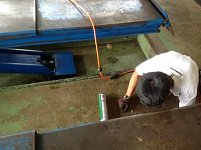 日頃の機材のメンテナンスの様子です! 作業の合間にリフトを掃除しています。 リフトは掘りごたつのように地面よりも下に下がっています。 なので、どうしてもホコリなどが溜まりやすくなってしまいます・・・ そのままではリフトの調子が悪くなってしまうので、お掃除をしています!
