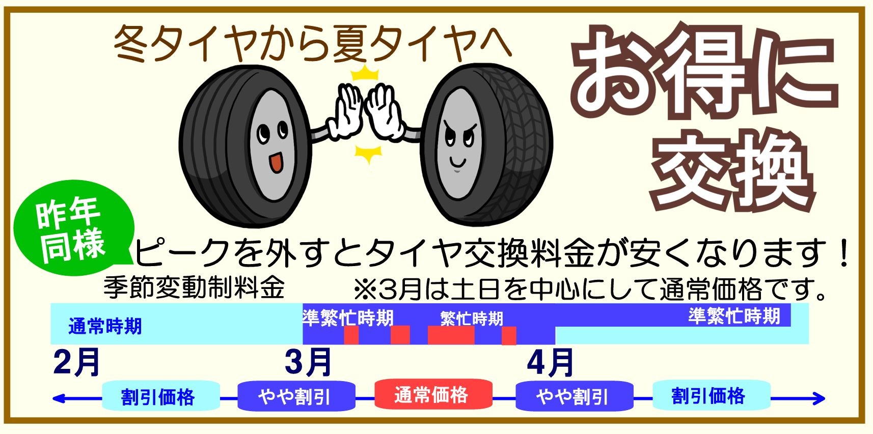 タイヤ交換はピークを外すとお得です