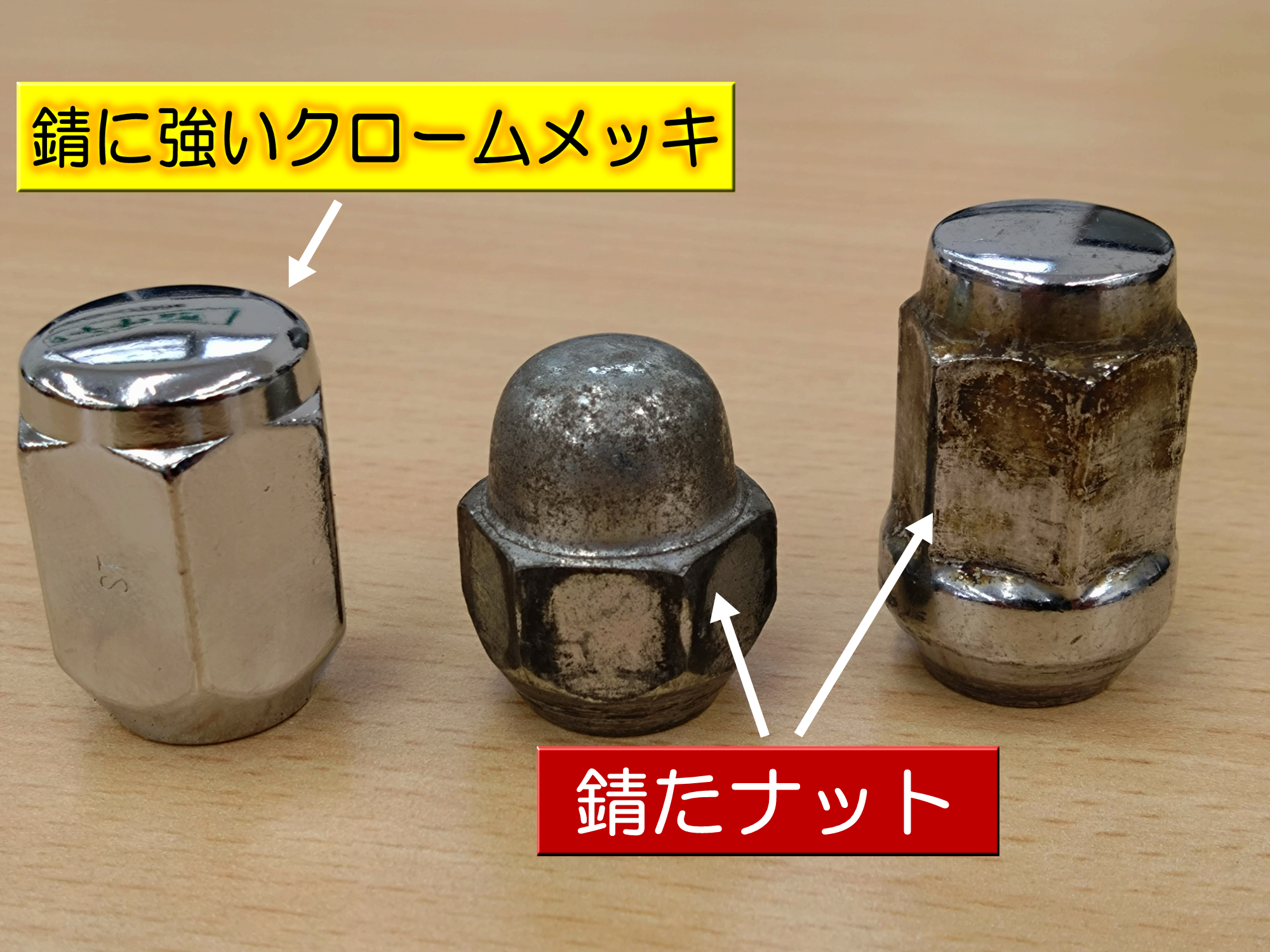 錆に強いナット ポスト 綺麗なアルミホイールに錆びたナットはちょっとがっかりします。 「どうせ錆びるだろう…」という方がいらっしゃいますが、錆に強いナットも有ります。 特に降雪地区のスタッドレスタイヤ用とか純正ナットが黒く汚れて錆びてしまう。と言う方に絶対お奨めアイテムです。 ネジ1本のこだわり、タイヤ館真庭にお任せ下さい。 カテゴリ:商品情報 ホイール関連