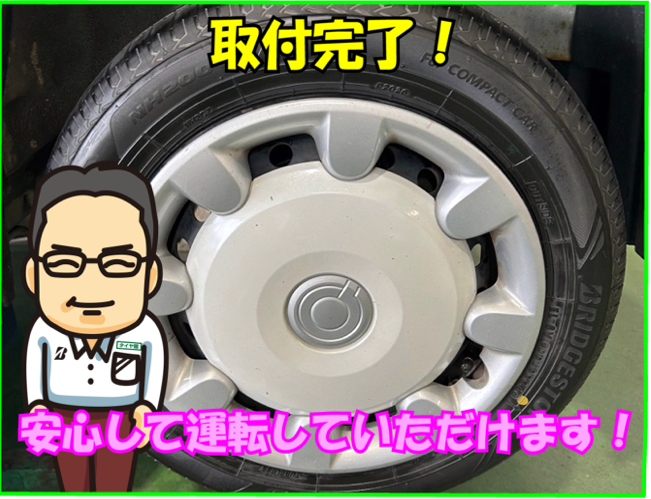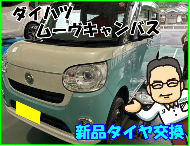 本日はダイハツ ムーヴキャンバスの新品タイヤ交換をご依頼いただきました。