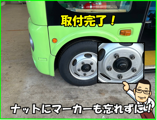 規定トルクで締めて、ナットに白いラインを引いて作業完了です。