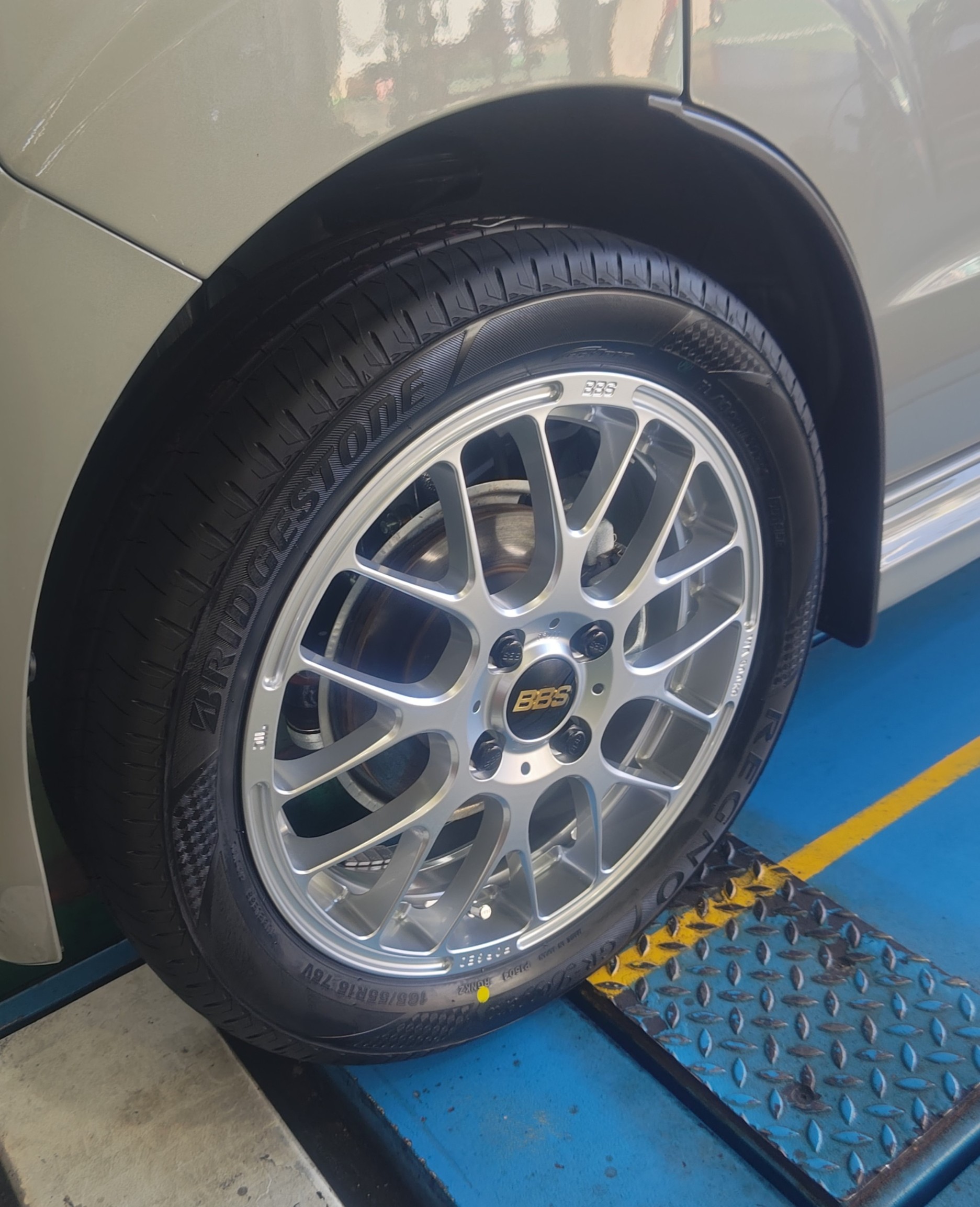 特徴的な細身のメッシュスポーク、中央に鎮座する黄金の立体ロゴエンブレム・・・そう、BBSです!!!!