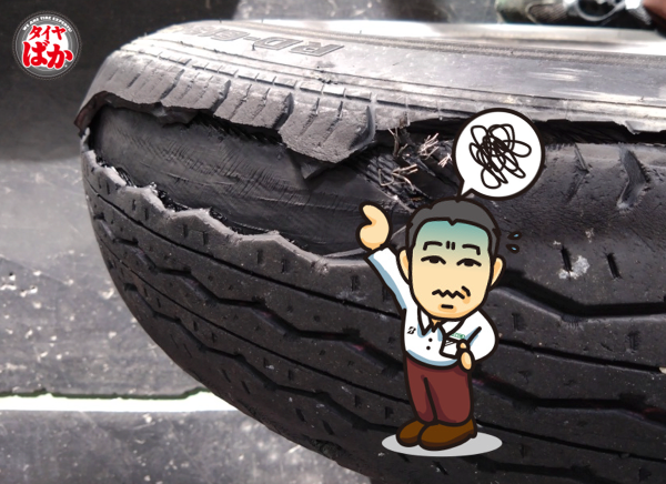 高速走行時の加熱と経年劣化によるスチールベルトとトレッドの剥離が疑われます。
