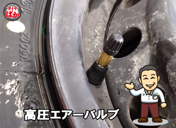当店では積載量が多く、高速道路走行などが多いハイエース、キャラバンなど195/80R15 107/105N 、195/70R15 106/104N などのタイヤを装着されている貨物車には高圧エアーバルブの装着を強くお奨めしています。