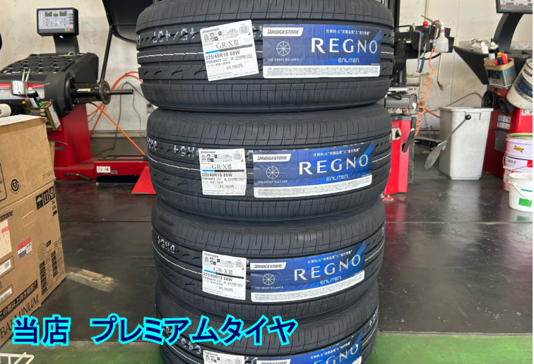 当店でREGNOはプレミアムタイヤです。チッ素充填無料、ローテーション無料となります。