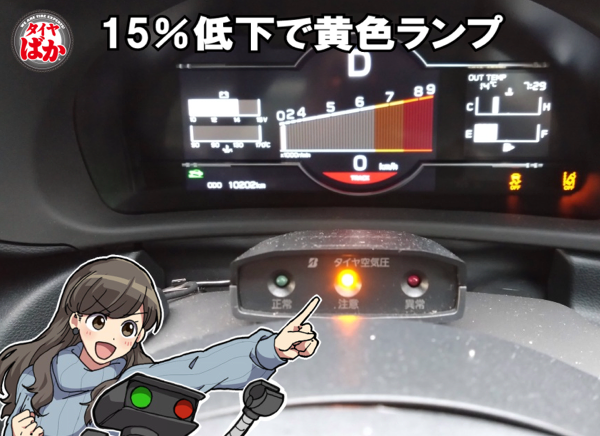 KY君はタイヤの空気圧が設定より下がるとランプが黄色、赤色に変わります。
