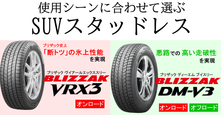 使用シーンに合わせて選ぶSUVスタッドレス☆BLIZZAK VRX3・DM-V3