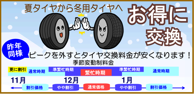 早くタイヤ交換をすると混まなくて割安でタイヤ交換が出来ます。