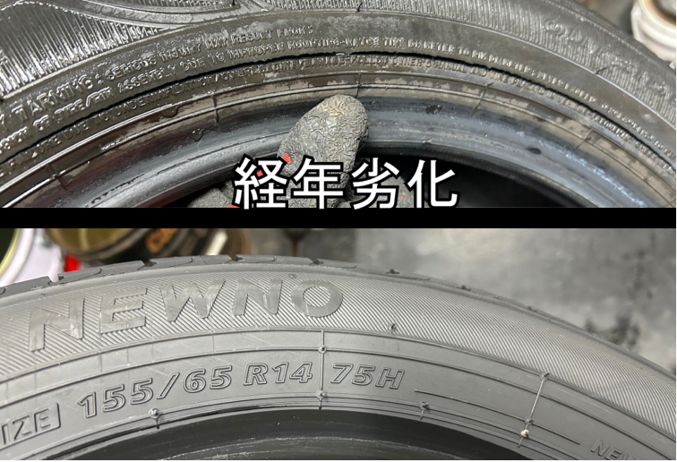 タイヤの側面にぐるり とほぼ一周に亀裂がございました!!!