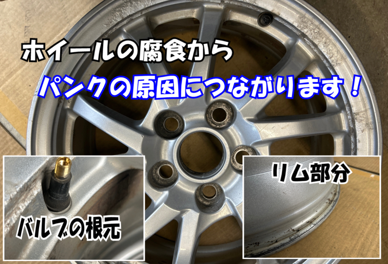 異物が刺さったパンクとは異なり、ホイールの腐食によるものは